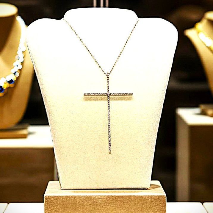 Collana oro bianco e croce di diamanti taglio brillante a 1700,00€