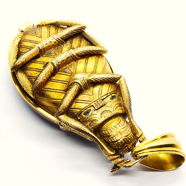 I gioielli Fasano non hanno bisogno di commenti. Insieme ad altre famose Maisons hanno fatto la storia della gioielleria e dell'arte orafa italiana. Ne è un esempio tangibile questo pendente con orologio a scomparsa realizzato a forma di scarabeo in oro giallo 18kt, smalti e diamanti. Dotato della sua scatola originale pesa 34,57 grammi. 1950 circa.