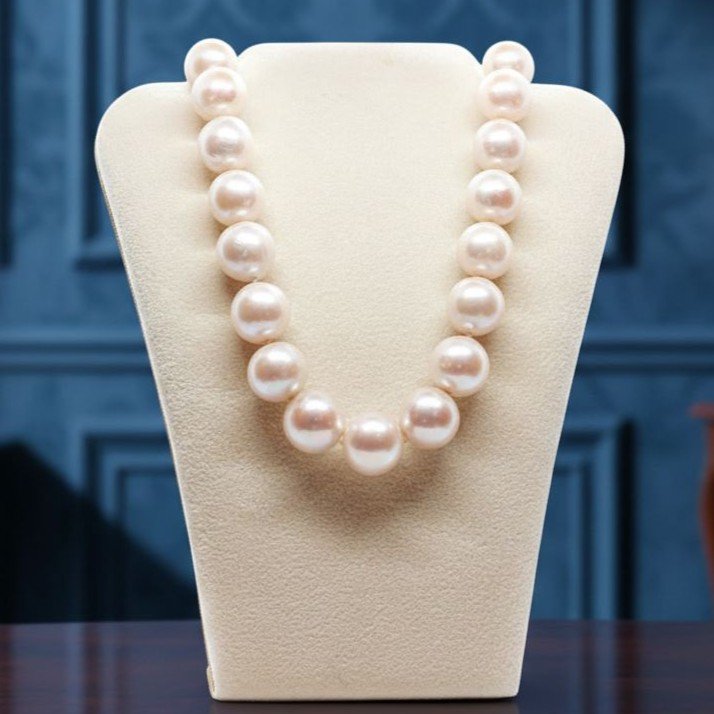 Girocollo di trentatrè splendide perle austaliane che vanno, in leggero degradè, da un diametro minimo di 10,10 mm ad un massimo di 13,70 mm. Chiusura in oro bianco 18kt con diamanti tg. "single cut". Peso 98,08.