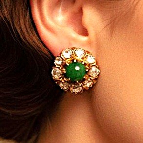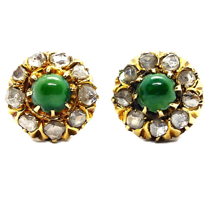 Orecchini anni 40 oro, giada e diamanti a 1400,00€