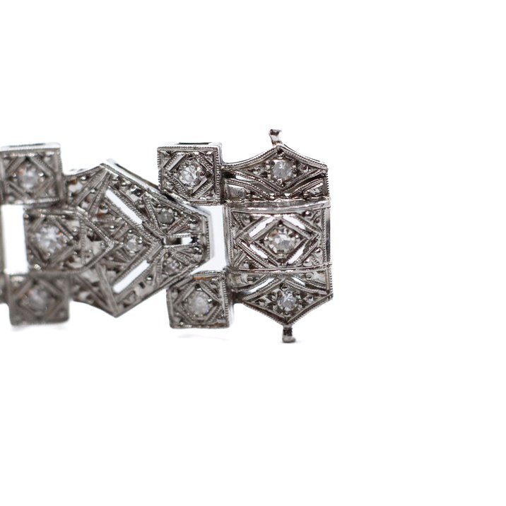 Un bellissimo bracciale in platino e diamanti più che un orologio. I diamanti sono tagliati a brillante e single cut. Peso gr. 49,44