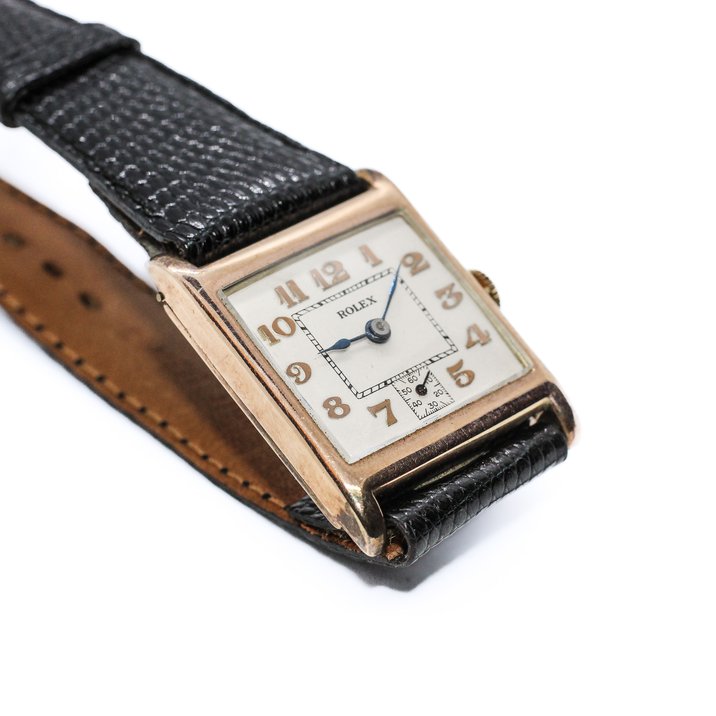 Orologio da polso Rolex in oro 9kt per il mercato inglese. 1930 circa. Dedica incisa sul retro.