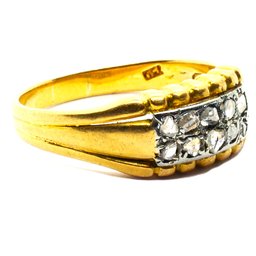 Cinque splendidi diamanti tg. brillante montati su oro giallo 18kt. I diamanti, di altissima qualità per purezza, grado di colore e taglio ( simmetria, polish etc.) hanno una caratura totale stimata di 1,70 carati. La misura dell'anello, modificabile qualora lo si desideri, è 15/55 ed il suo il peso è 5.25 grammi. Corredato di Certificato Gemmologico.