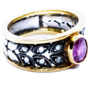 Anello antico in oro rosso, argento e diamanti taglio brillante