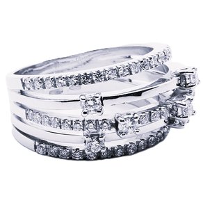Anello in oro bianco, diamanti taglio brillante e rubini